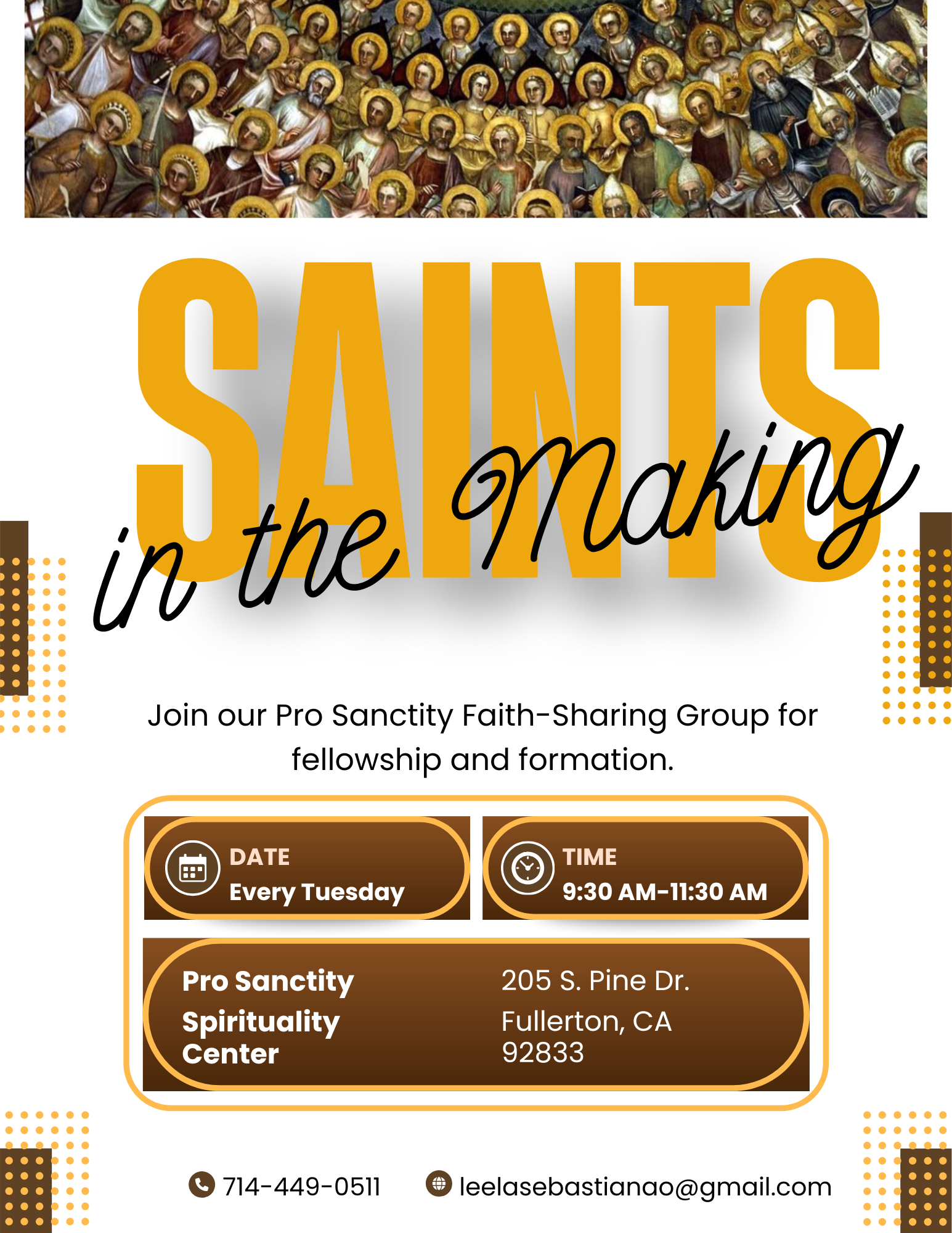Come adore the Lord in the Blessed Sacrament! Every Wednesday at the Pro Sanctity Center. Come by anytime or commit to a regular hour.